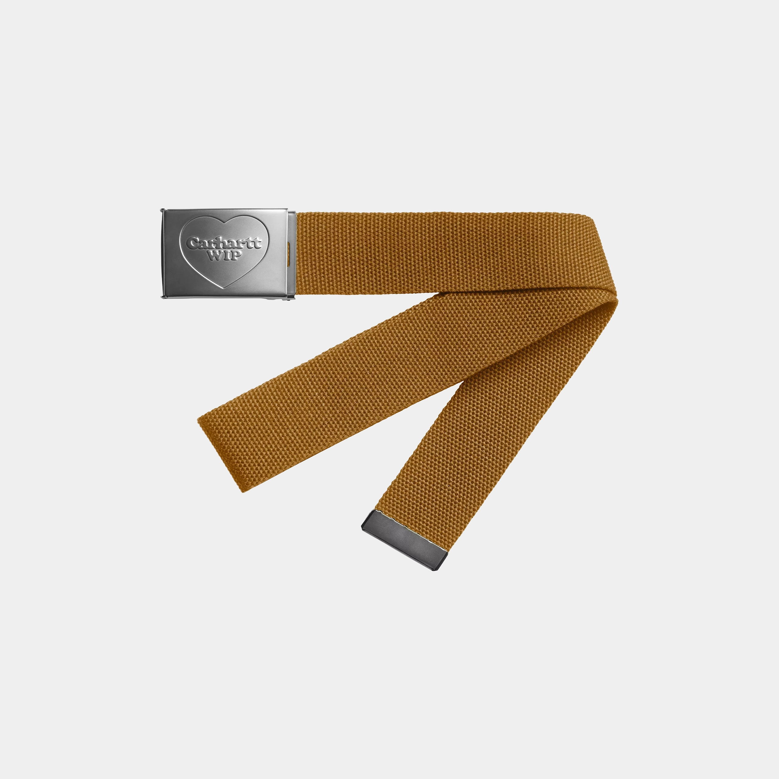 The Heart Clip Belt is constructed from robust polyester canvas and features a fully adjustable, interchangeable chrome metal clip buckle with a debossed heart graphic.