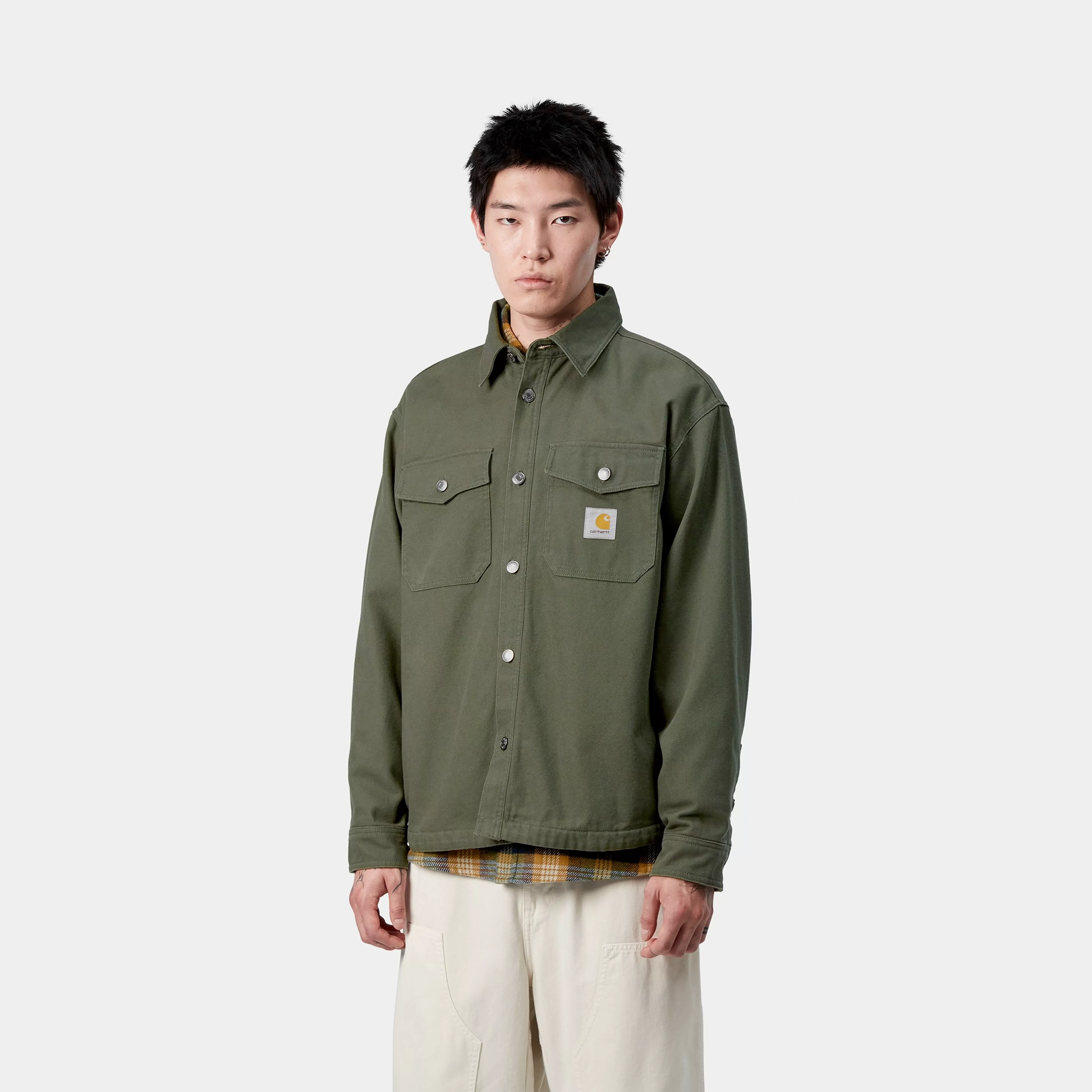 The Selby Shirt Jacket is made in a regular fit from heavyweight, fleece-lined cotton canvas. The style has been garment-washed for a softer feel. It also features two chest pockets with flaps and buttons. A woven Square Label completes the design.