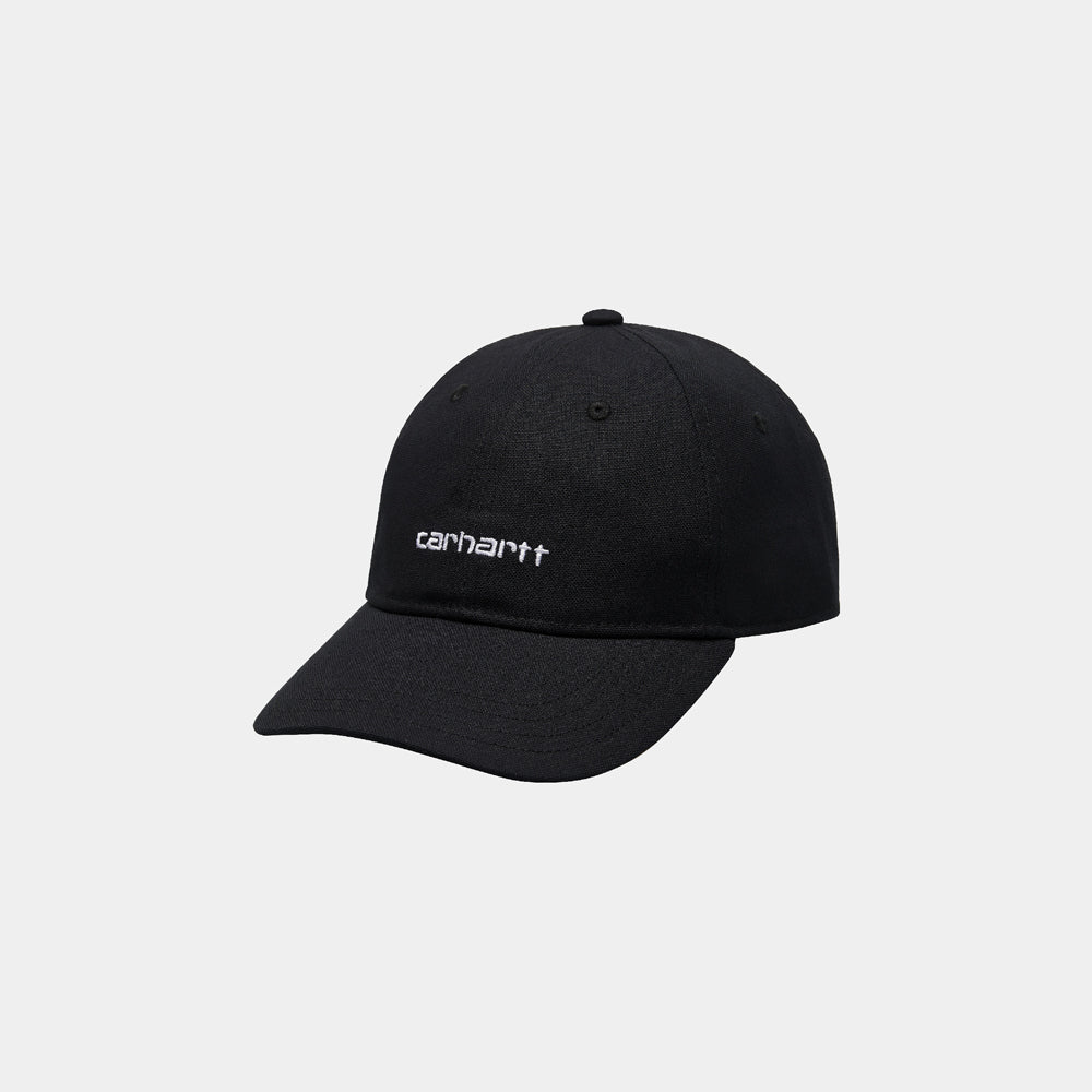 The Canvas Script Cap is an unstructured and unlined six panel style with a firm, curved peak. Made of cotton canvas, the cap has been garment-washed for softness. It is embroidered with the Carhartt WIP Script Logo on the front and features an adjustable strap to ensure a perfect fit.