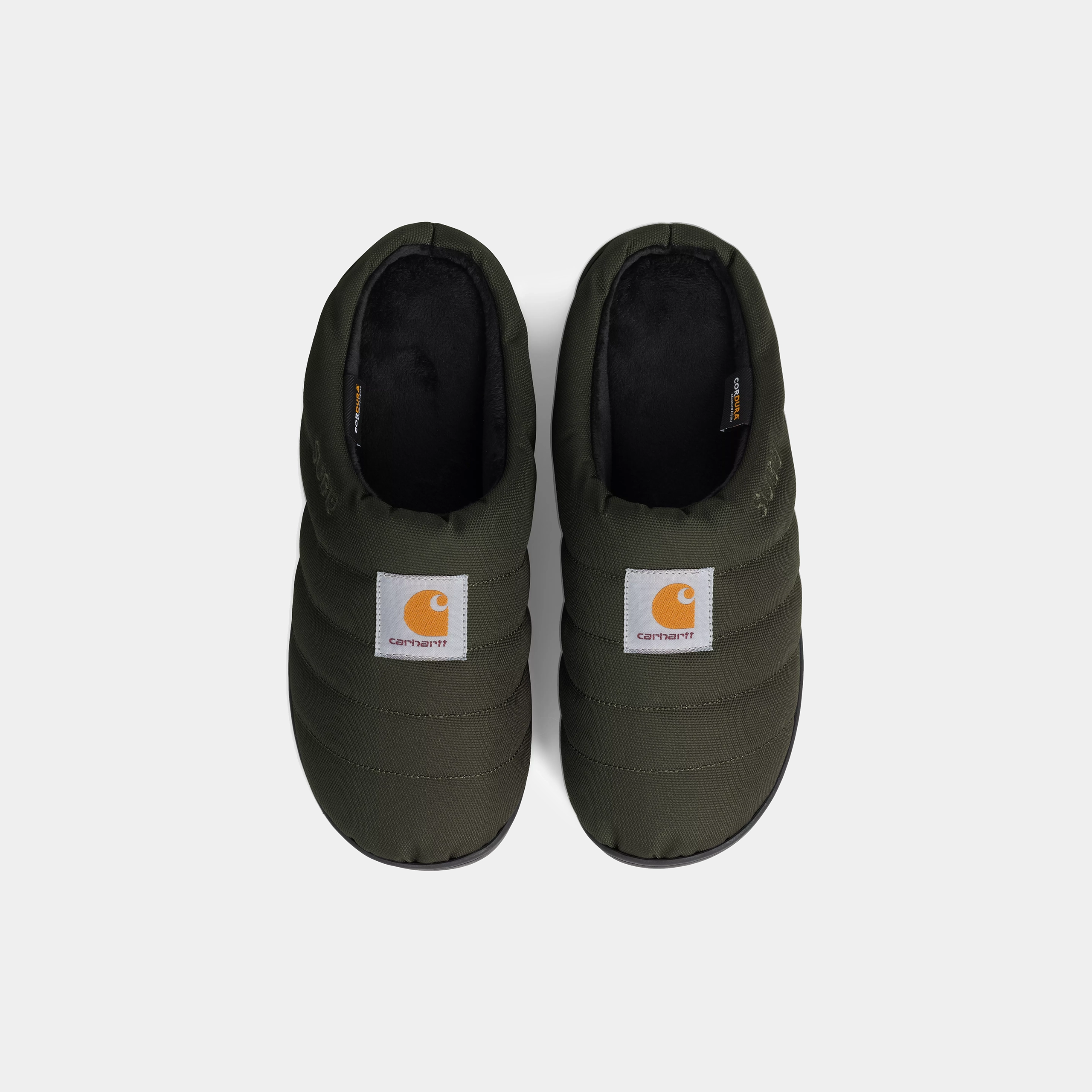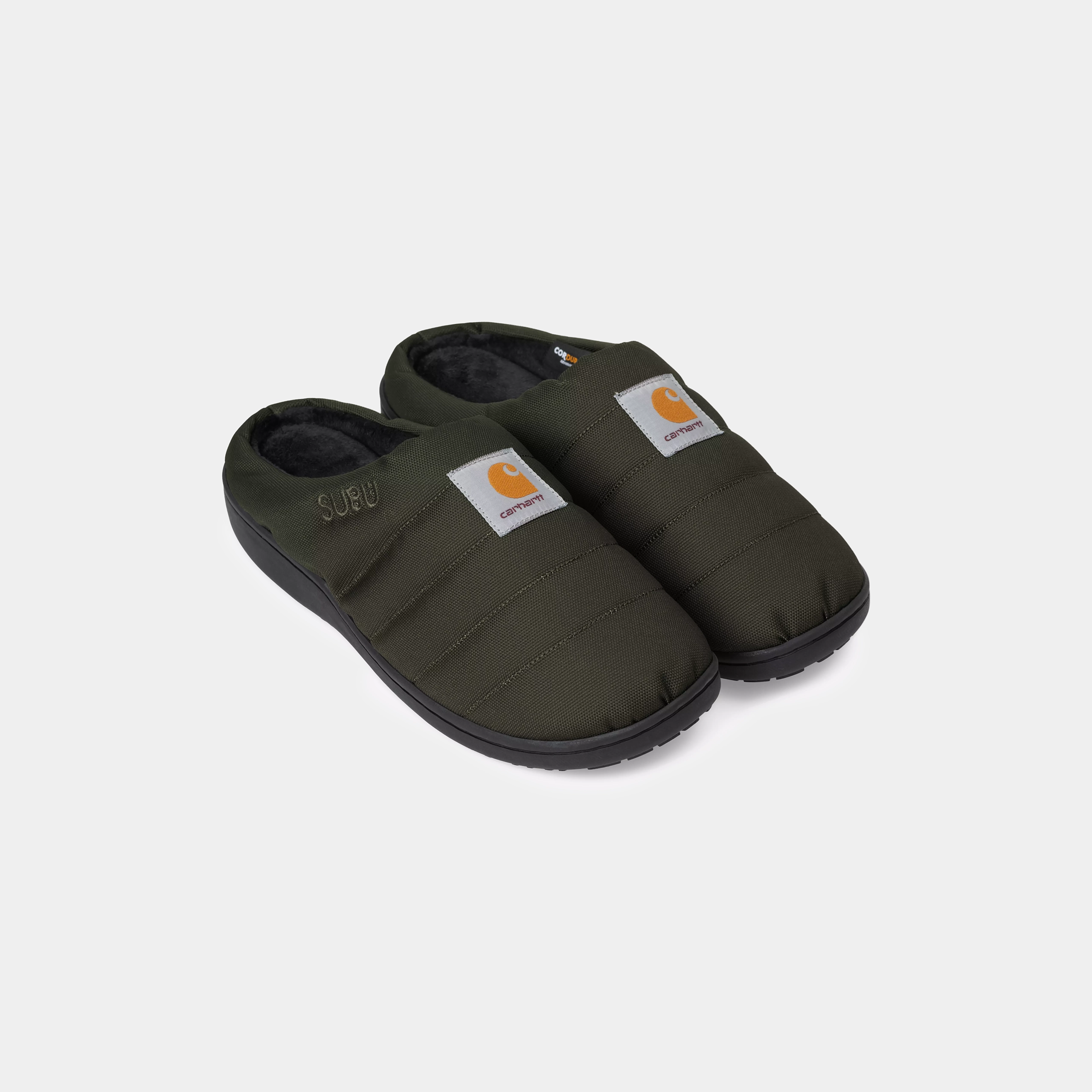 The Cordura® Slippers are made from recycled polyester Cordura®, in collaboration with Japanese footwear brand Subu. They are padded with a 4-layer pillow insert and detailed with a woven Square Label. The slippers also come with a matching carry bag.