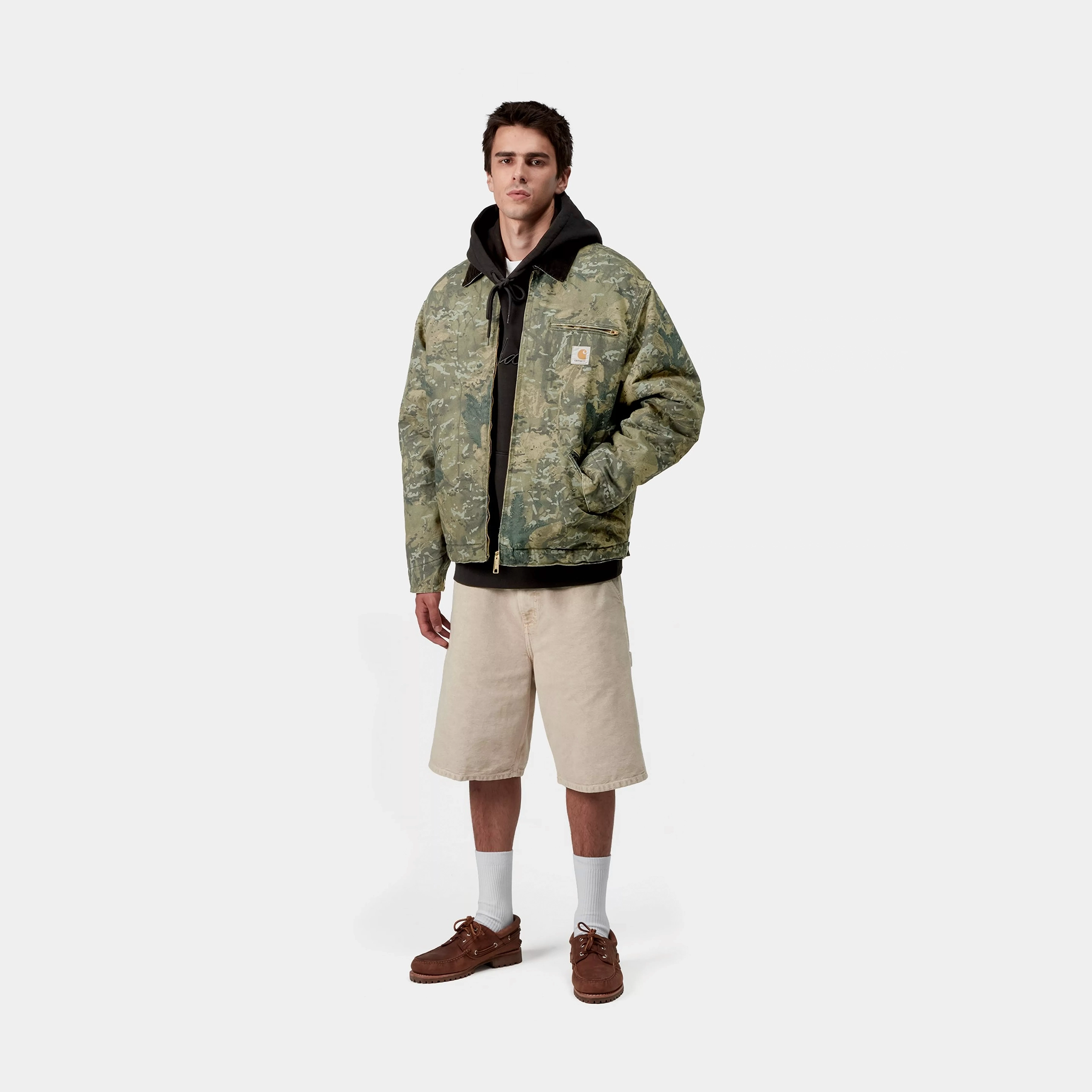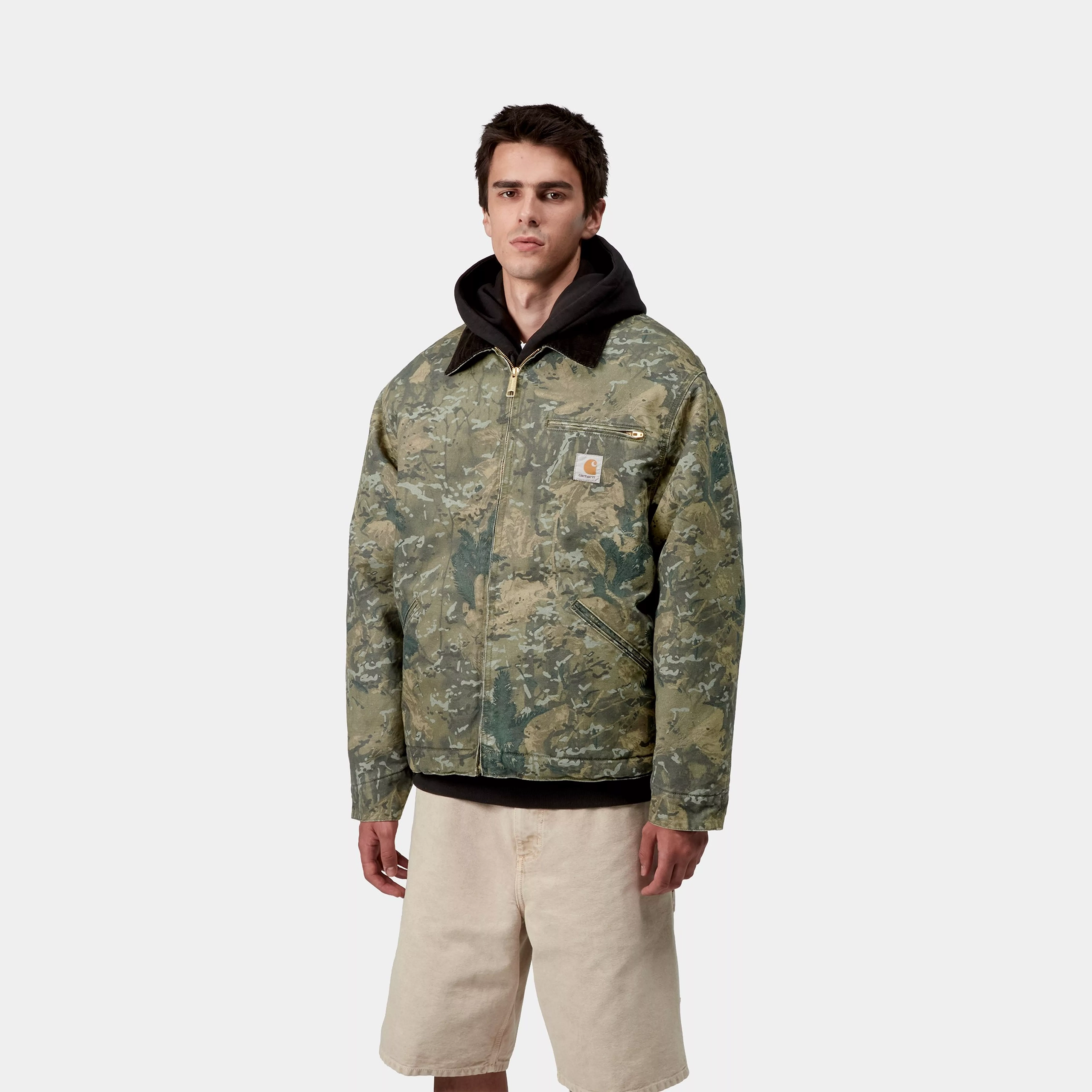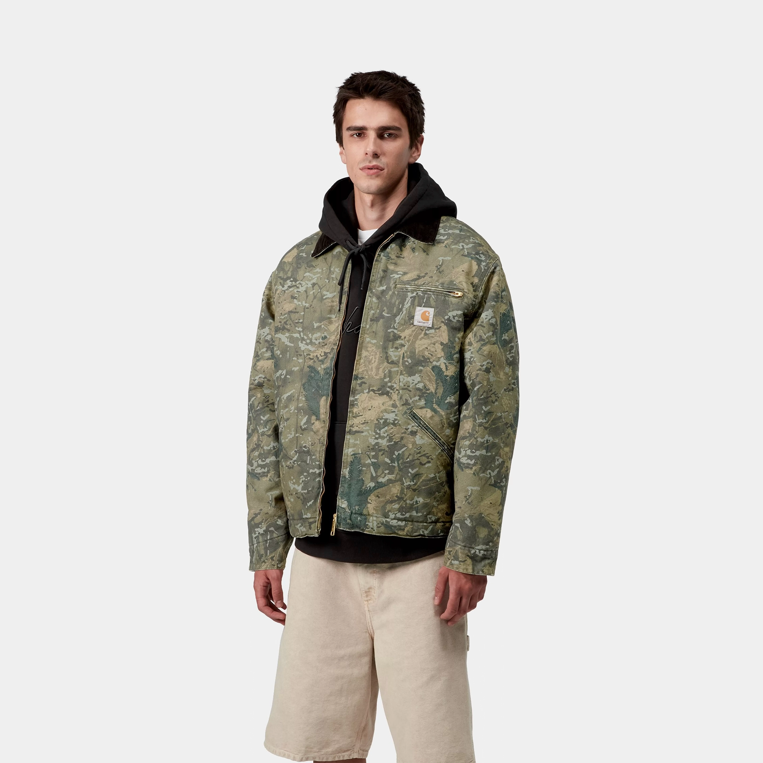 The OG Detroit Jacket is made in our original loose fit • from heavyweight cotton Dearborn Canvas, which has been chalk-washed for a sun-faded effect with strong variations in color on details. Both the body and sleeves are lined for warmth. A corduroy collar, zipped front closure and zipped chest pocket offer tactile detailing. The cuffs and the bottom band are adjustable. A woven Square Label completes the design.