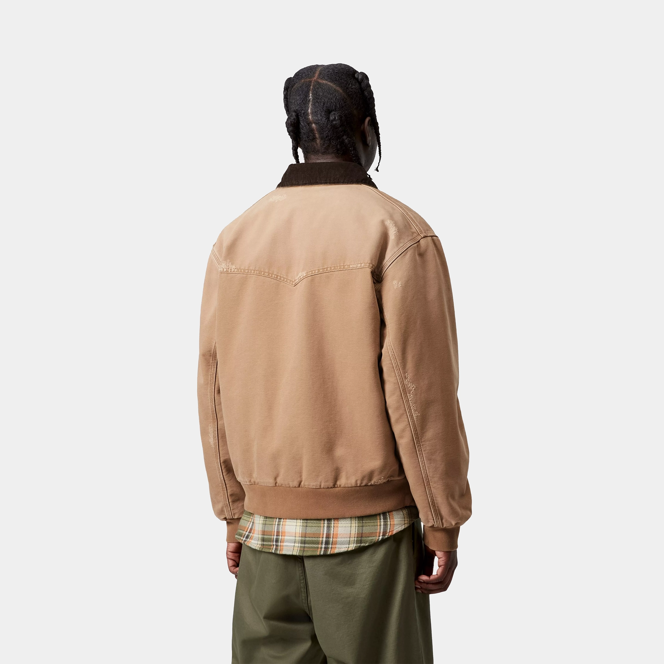 The OG Santa Fe Jacket is constructed from heavyweight Dearborn Canvas with a diamond-quilted lining. The item is made in our original loose fit, which is slightly boxier and more oversized. It also features rib-knit trims. A corduroy collar, side pockets, and a chest pocket on the inside offer functional touches, while triple-stitch details provide extra durability. A woven Square Label completes the design.